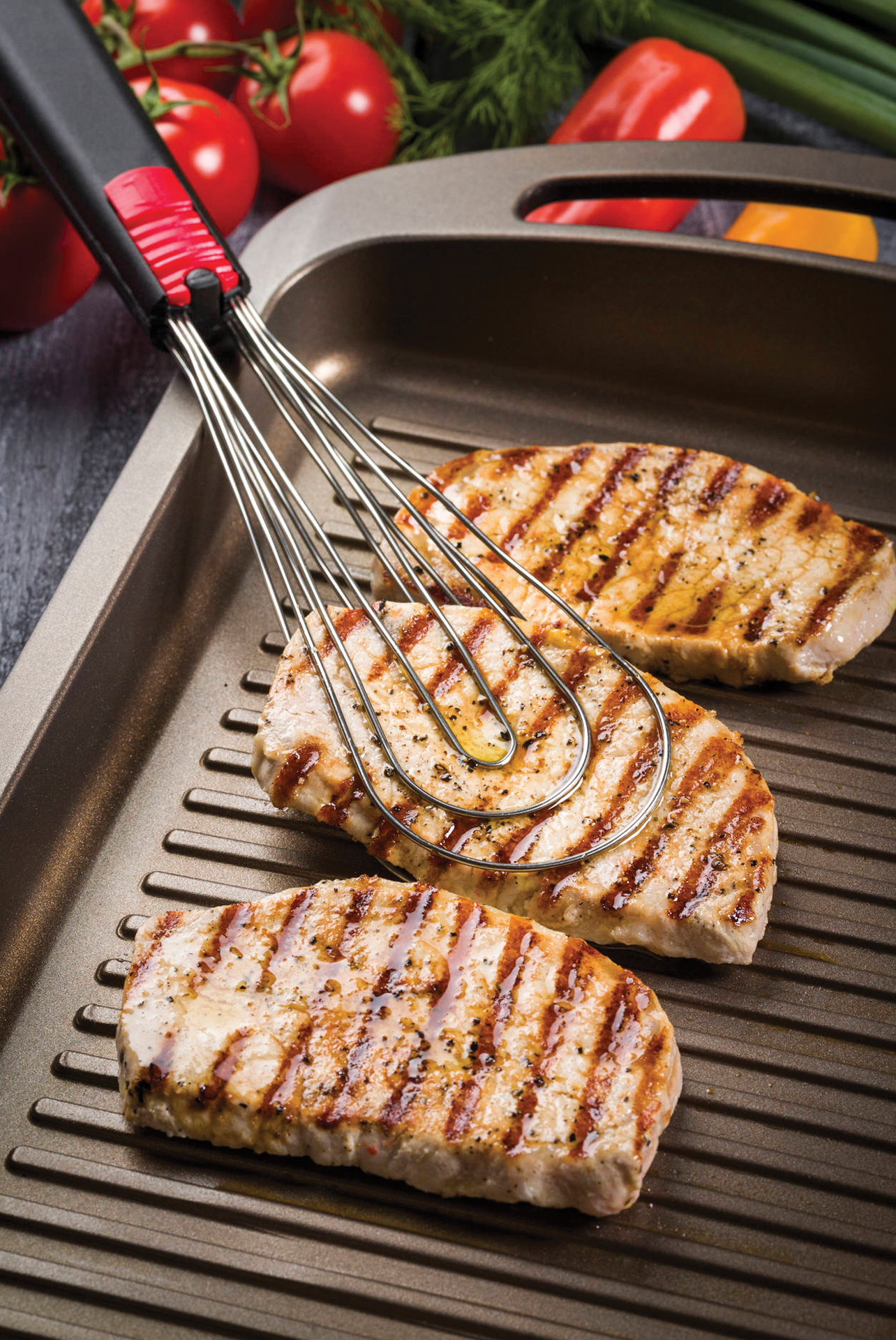 Λειτουργεί με δύο τρόπους, σαν λαβίδα που πιάνει το κρέας ή το ψάρι από τη σχάρα, και σαν σχάρα ψησίματος που “ασφαλίζει” το κρέας ή το ψάρι από τις δύο πλευρές του χωρίς να το τραυματίζει.
